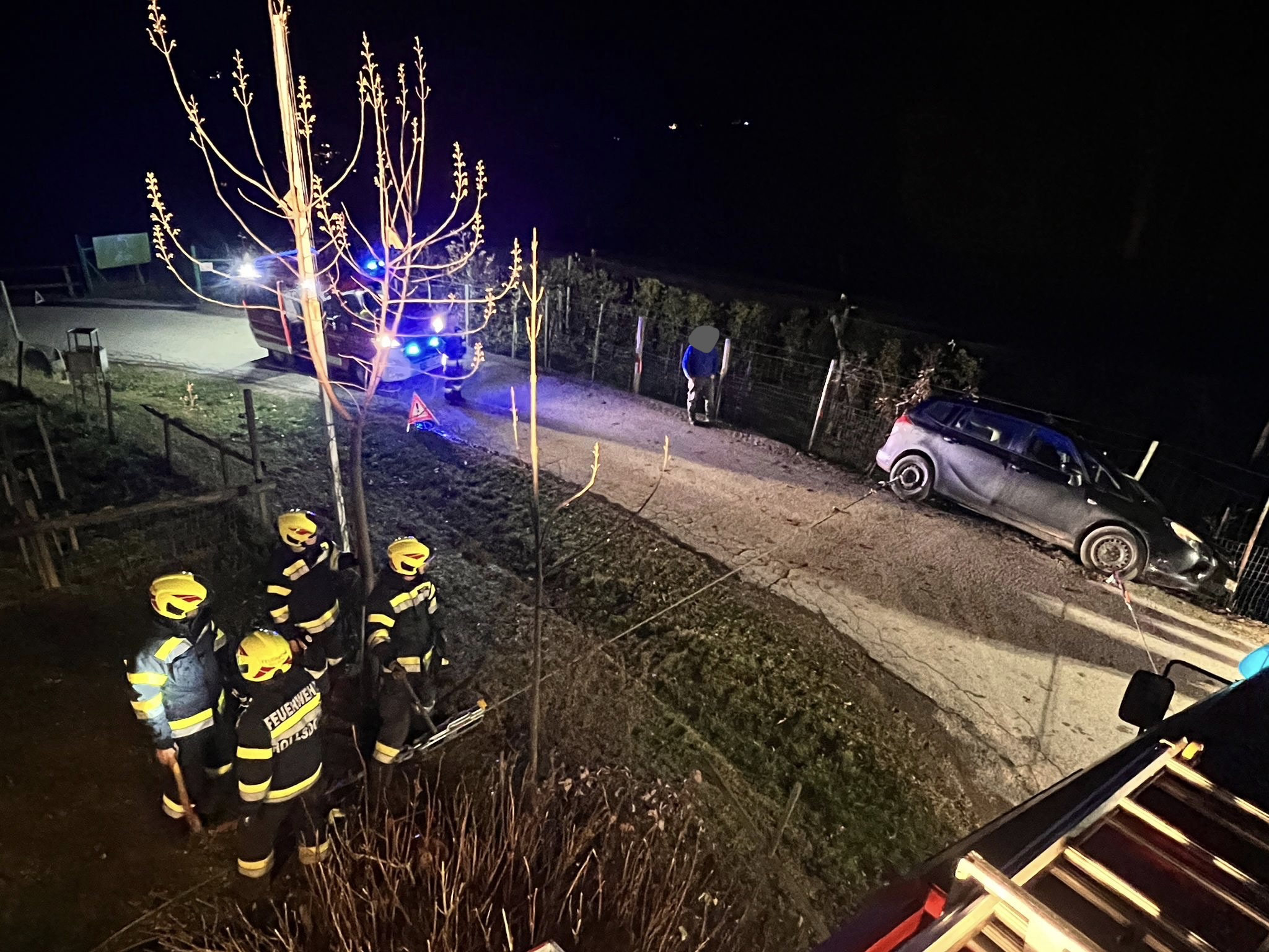 Grund der Alarmierung: PKW in Graben, droht abzustürzen